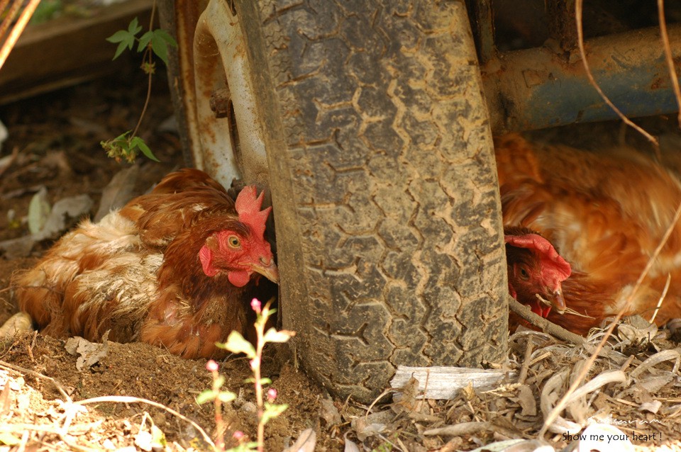 두 마리 닭이 뭔가 얘기 하는 듯합니다.