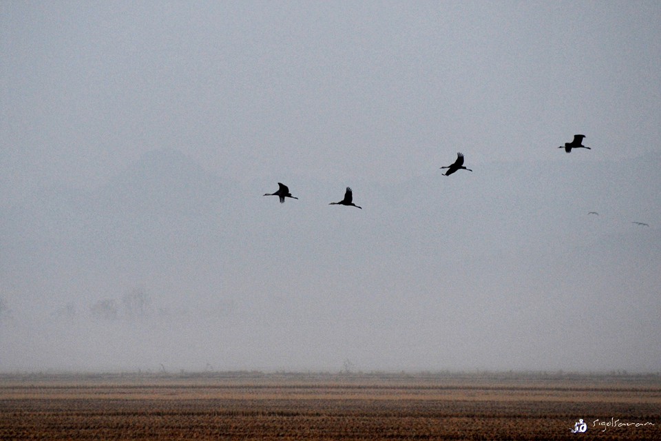 이른 새벽의 검은 두루미